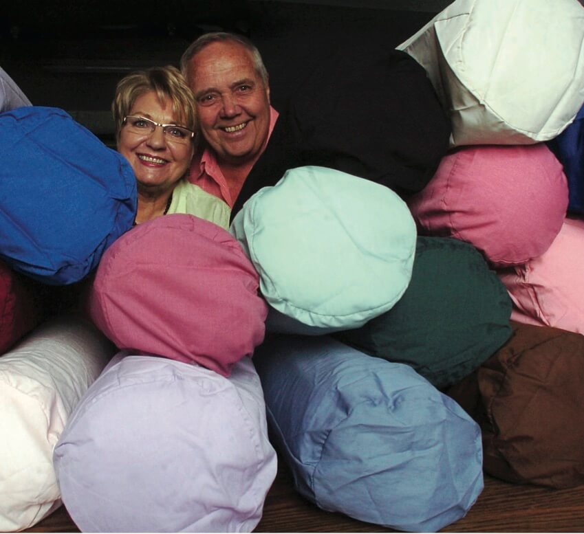 Invented in 1992 by Jim and Judy Blondin, Align-Right was inspired by Judy's experience working in a chiropractic office where she often saw patients walk in with chronic neck pain. Instead of trying to find a solution within the parameters of a traditional pillow, Jim and Judy thought outside the box and focused on creating a pillow with a cylindrical shape that supported a natural neck curve.